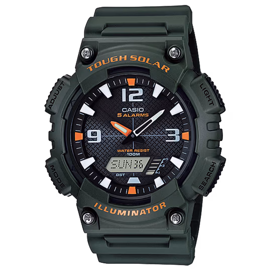 Casio AQ-S810W-3A men's sport military-green matte resin round black ana-digi solar watch