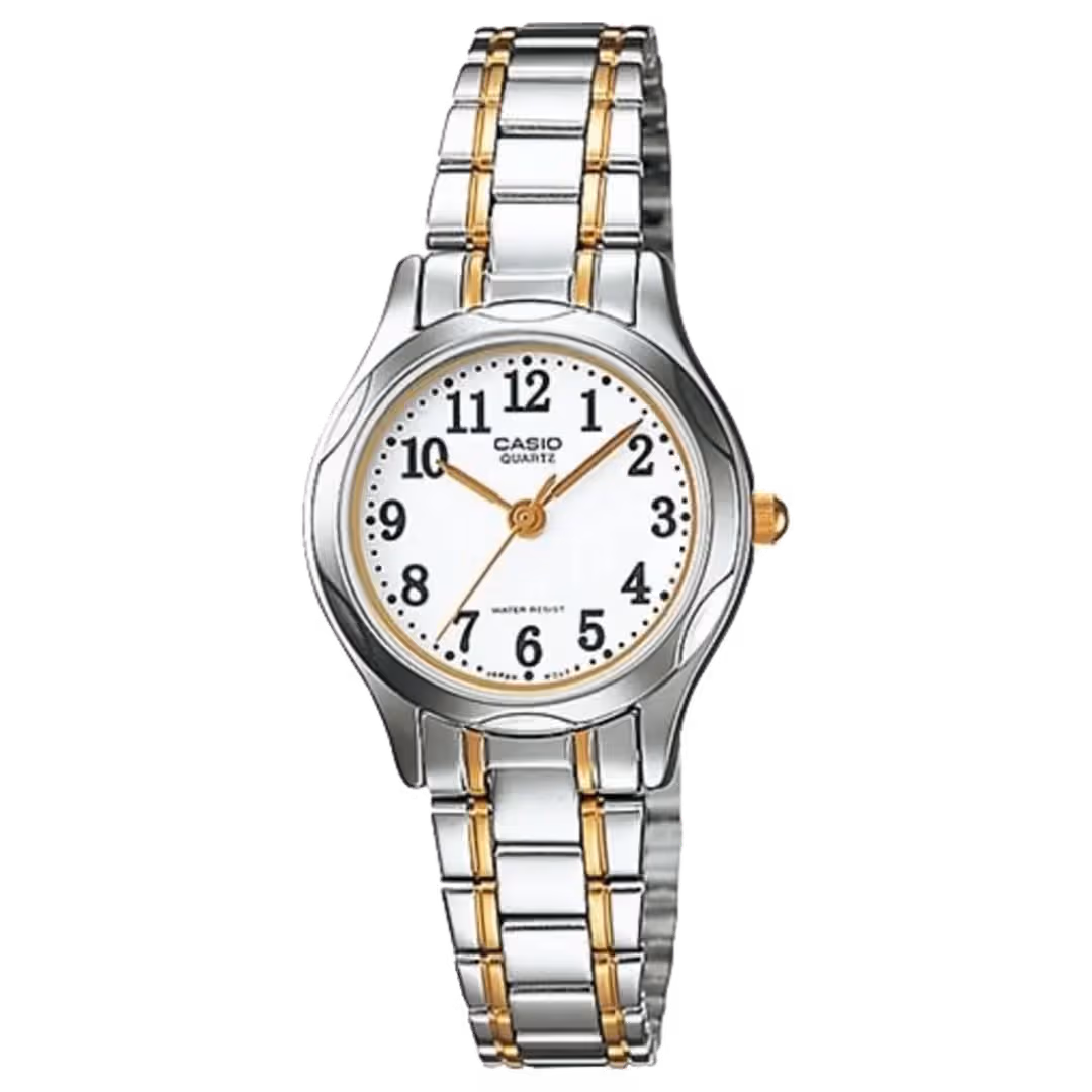 Casio LTP-1275SG-7B Timeless women's silver and gold two-tone stainless steel bracelet analog watch with white dial