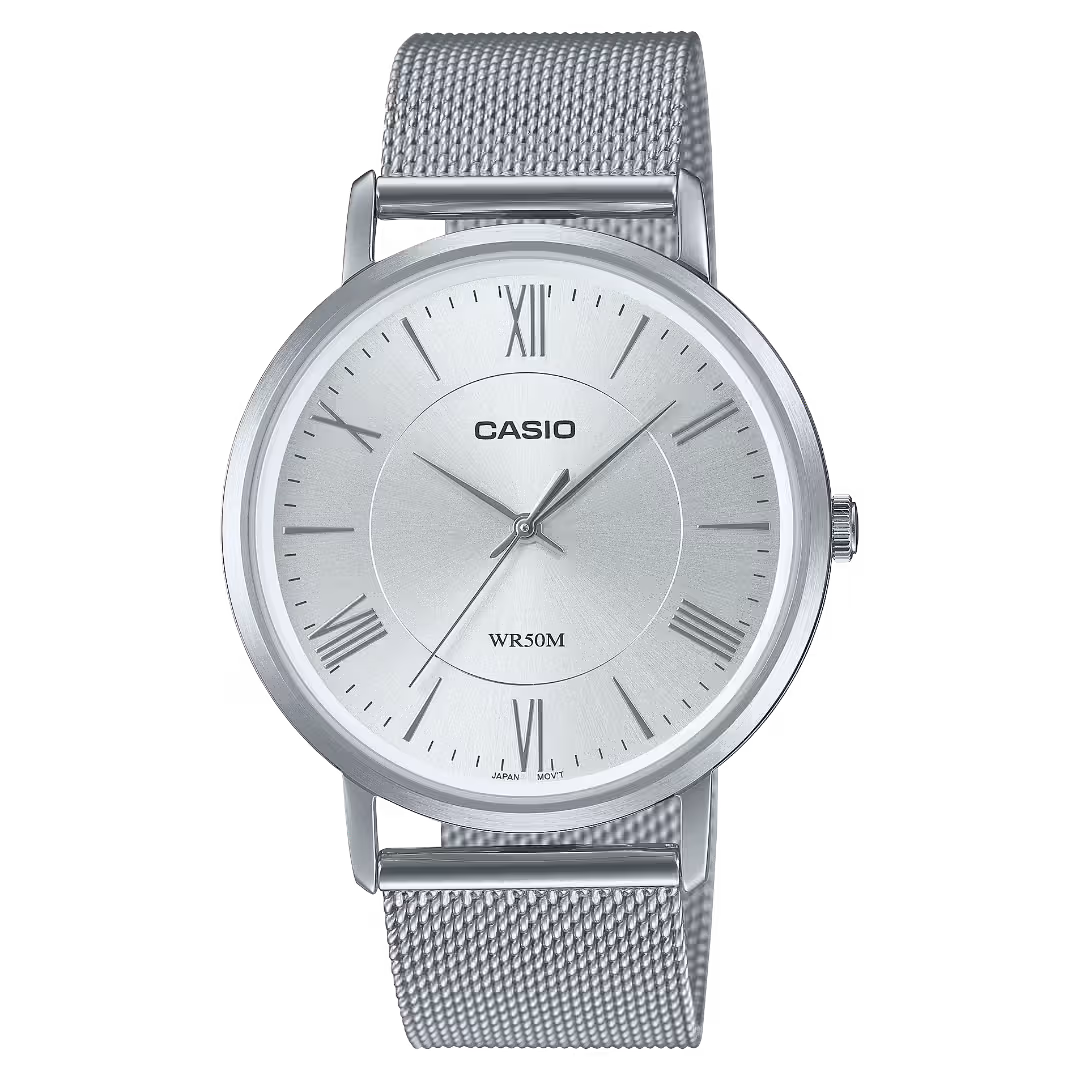 Casio MTP-B110M-7A Timeless silver stainless steel milanese mesh men's analog quartz watch