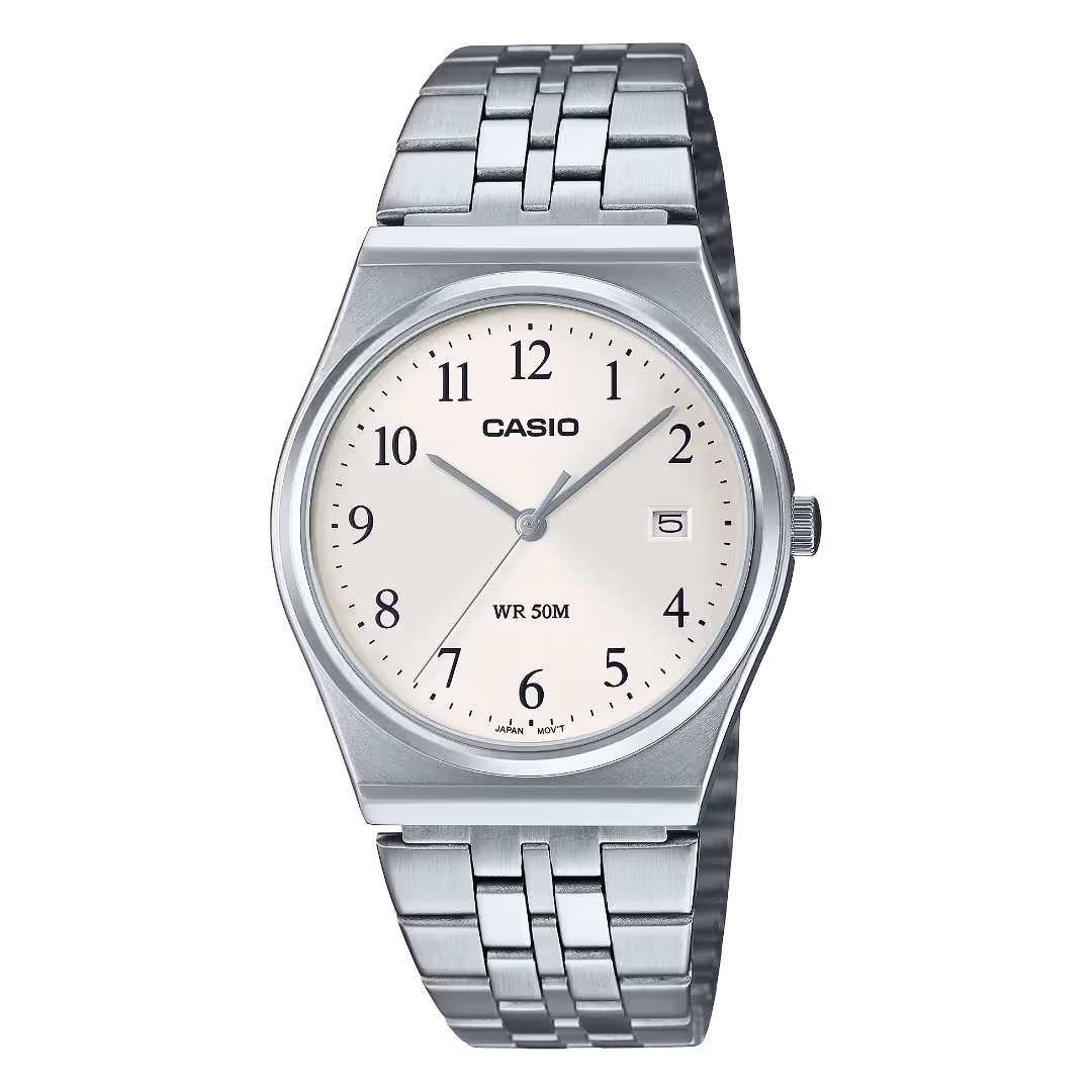 Casio MTP-1302D-7A1VEF Timeless silver brass case white dial stainless steel bracelet men's classic analog quartz watch