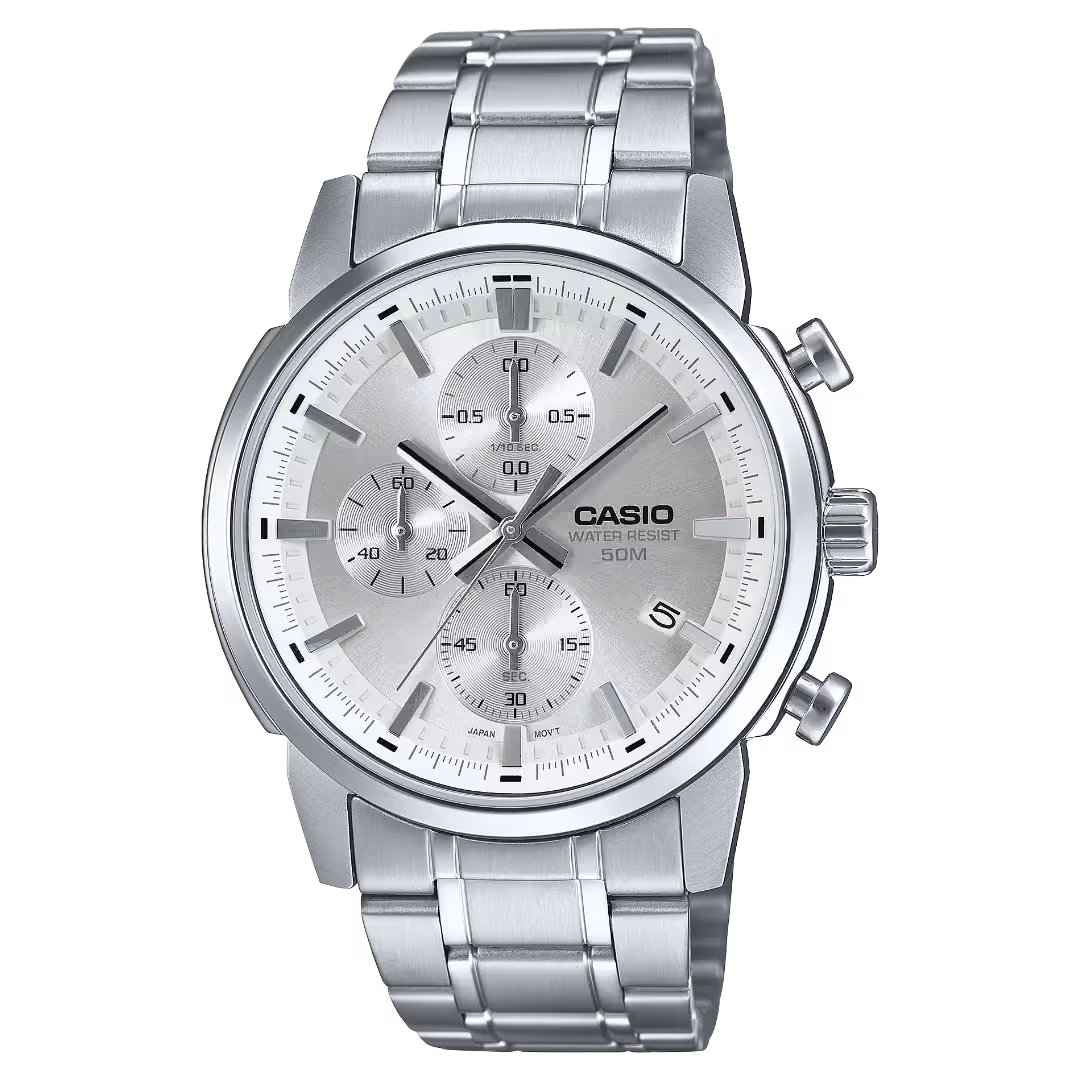 Casio MTP-E510D-7A Timeless silver stainless steel men's chronograph watch