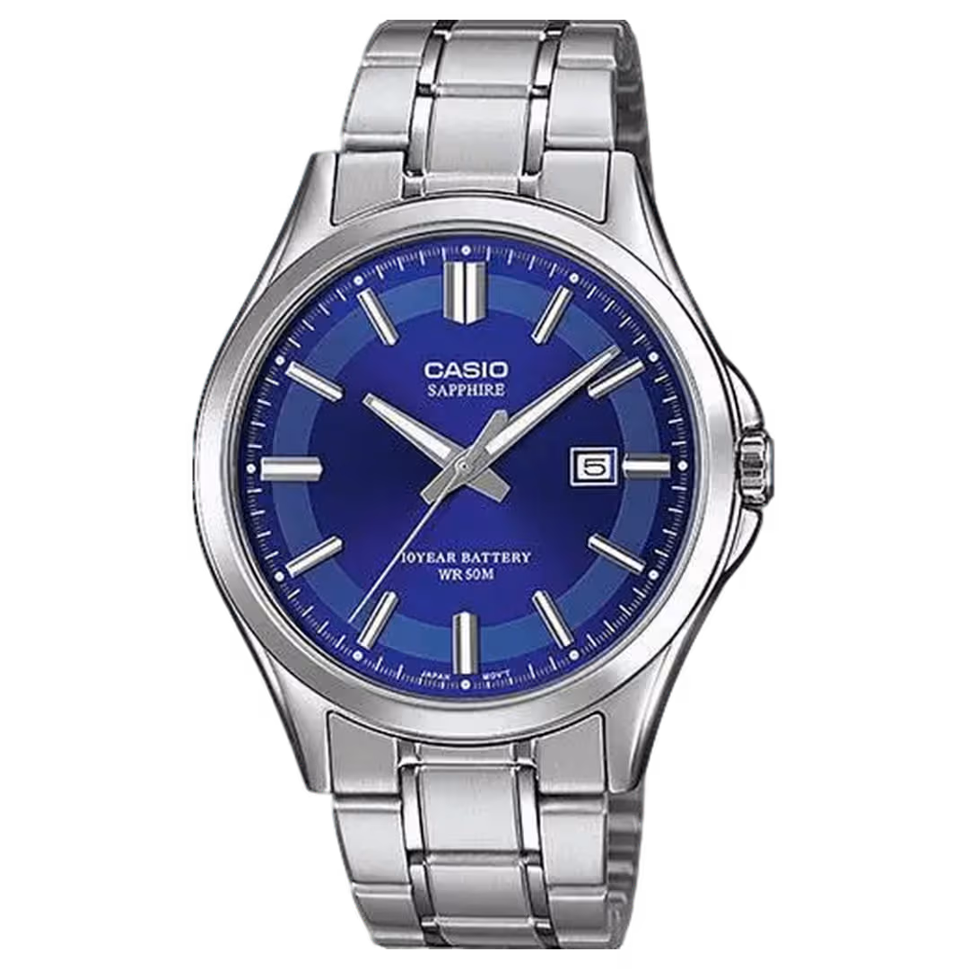 A steadfast steel instrument radiating deep royal-blue clarity