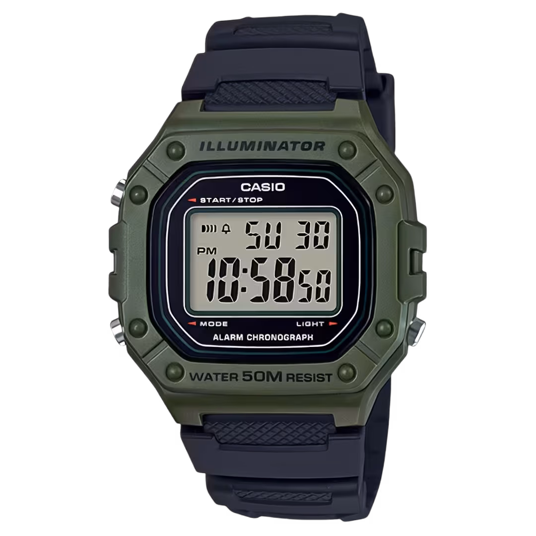 Casio W-219HC-3B Timeless olive green polymer resin digital sport watch