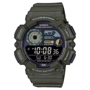 Casio WS-1500H-3B men's sport military-green resin digital watch with black negative display.