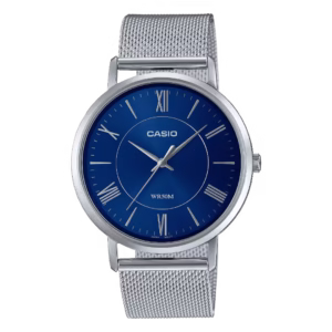 Casio MTP-B110M-2A Timeless Collection silver stainless steel Milanese mesh men's blue dial analog quartz watch