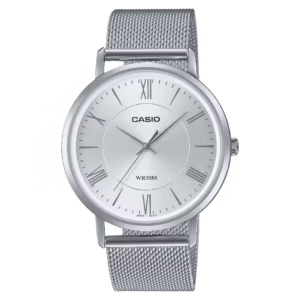 Casio MTP-B110M-7A Timeless silver stainless steel milanese mesh men's analog quartz watch